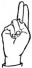 На ћирилици написано МЛАДЕН АЦАМОВИЋ састоји се из 14 слова [?]. Исписано ћириличном једноручном азбуком за глувонеме: